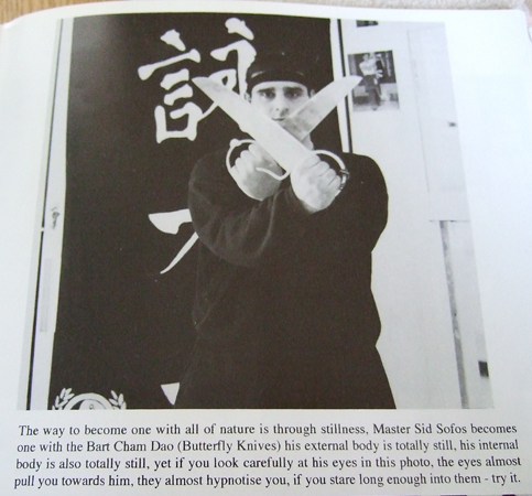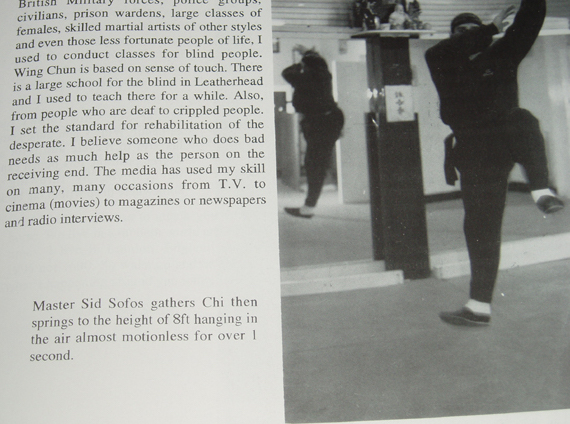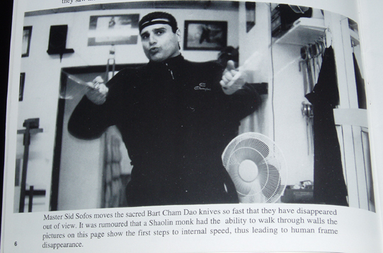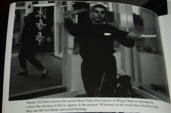Sid made claims about his mystical and supernatural kung fu abilities, which his instructors were told to back up and verify. These abilities were often similar to those seen in martial arts movies, funnily enough, such as firing 'balls of energy' as in Big Trouble in Little China, hovering in mid air, making his knives disappear, lighting the air with flames when using kung fu knives or to punch at the speed of a bullet, bending light with his kung fu knives or hand techniques or even turning the volume knob on his car radio without touching it, using qi from his finger.